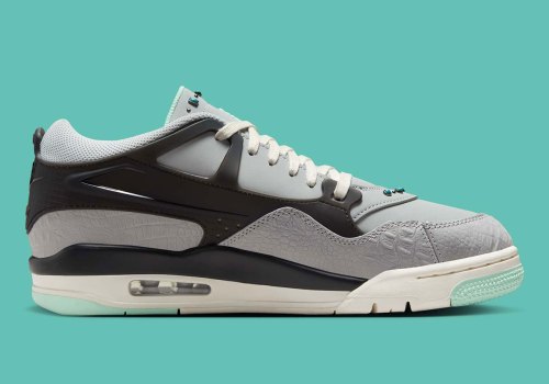 Bearing a color-combination that sparks memories of the Air Jordan 4 “Green Glow,” this Air Jordan 4 RM sees a light grey croc-skin textured mudguard to instantly begin on a lux note. Black plastic overlays, trademark of the RM model, contrast the elegant nature of the base material, while the tongue and base come ornately decorated in a crown of turquoise stones.