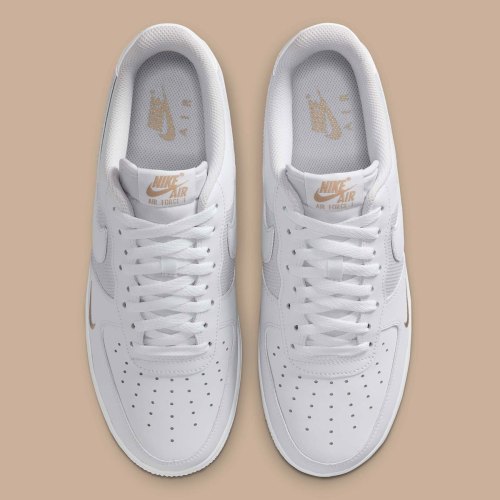 Starting with the most apparent change, the quarter panels on both sides feature what appears to be mesh material. The beloved mini Swoosh appears in “Parachute Beige” on the lateral side of the toe, matched by more subtle accents on the tongue tags, “Nike Air” backtab text, and “Air” midsole branding. Nothing crazy – just another addition to Nike’s deep well of lowkey AF1 releases.