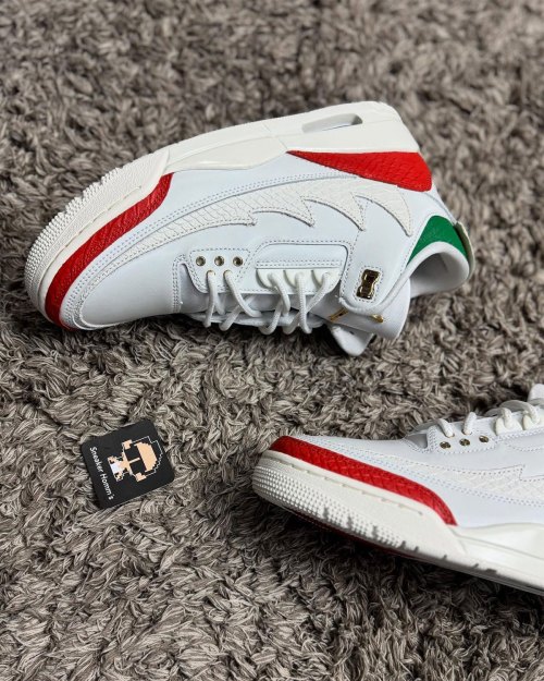 A first look at this upcoming September 2025 release has surfaced, revealing an incredible leather overlay with jagged edges and snakeskin detail inspired by the masks commonly worn by lucha libre wrestlers. The exotic leathers continue on the red toe-guard and heel-guard in red, while the green appears on the ankle color. Rounding out the patriotic Mexican colorway is touches of gold that appear on the metallic logo hits on the tongue as well as the Jumpman on the heel.
