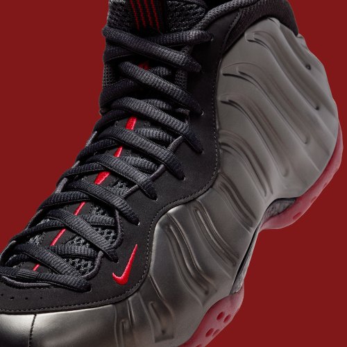 Nike dropped near-identical “Black/Varsity Red” Foams in 2007 and then again in 2010, with the latter release giving way to the “Cough Drop” nickname. A black Foamposite shell and matching upper portion make their return, complemented by soothing pops of red on the outsole, tongue strip, pull tabs, and branded elements. This was one of two Foamposite Ones previewed at Nike’s Fall/Holiday 2025 showcase, joined by a “Carbon Fiber” Foamposite featuring icy blue soles.