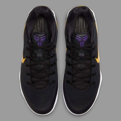 In line with both of those, the silhouette is now primed to become a common sight at your local runs as we embark on the Nike Kobe 9 EM “Team Bank” collection, including the “Black/University Gold” rendition at hand. No deep analysis is needed to draw the connection back to the Lakers’ patented yellow and purple, particularly effective in recalling “Hollywood Nights” jerseys that the Black Mamba so fittingly championed on-court. Below the shimmering Swoosh and jeweled purple Sheath logo, a bit more vibrancy sneaks into the design with a speckled heel counter panel.