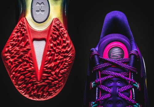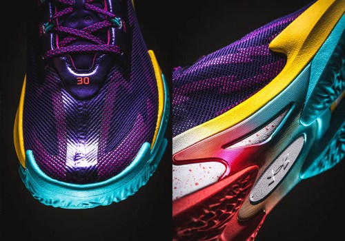 The eccentric multi-color palette here is certainly worthy of note, pinning royal purple throughout the breathable upper and a variety of primary tones within the sole unit. However, especially as we continue to chalk off debut looks for the Curry Series 7, the actual construction remains very much of note.