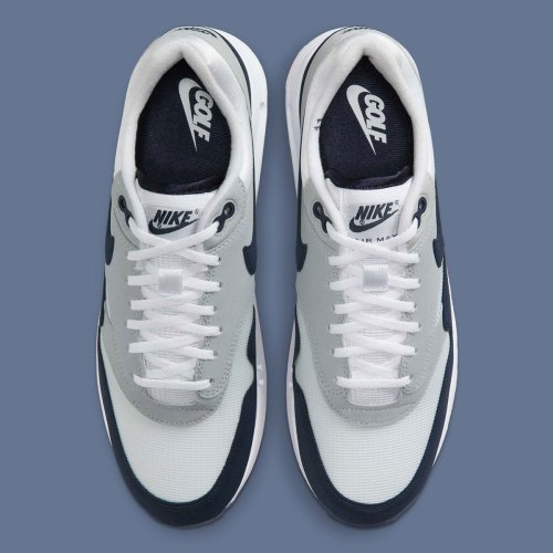 As the Swoosh has carved out a larger footprint and deeper catalog of those cleated retakes, the Nike Air Max 1 has surfaced as the silhouette it’s most willing to bring to the green. That’s both with link-ups alongside Eastside Golf and mainline editions, often maintaining the same color blocking and design language seen on regular GR pairs. That remains the case with the “Wolf Grey/Obsidian” split at hand, flipping the “Sport Blue” style layout with navy accents and a neutral base. And yes, if you’d like to double check its performance bonafides, look underneath; extended lugs in the outsole ensure that it’ll hold up to however many rounds you deploy it for.