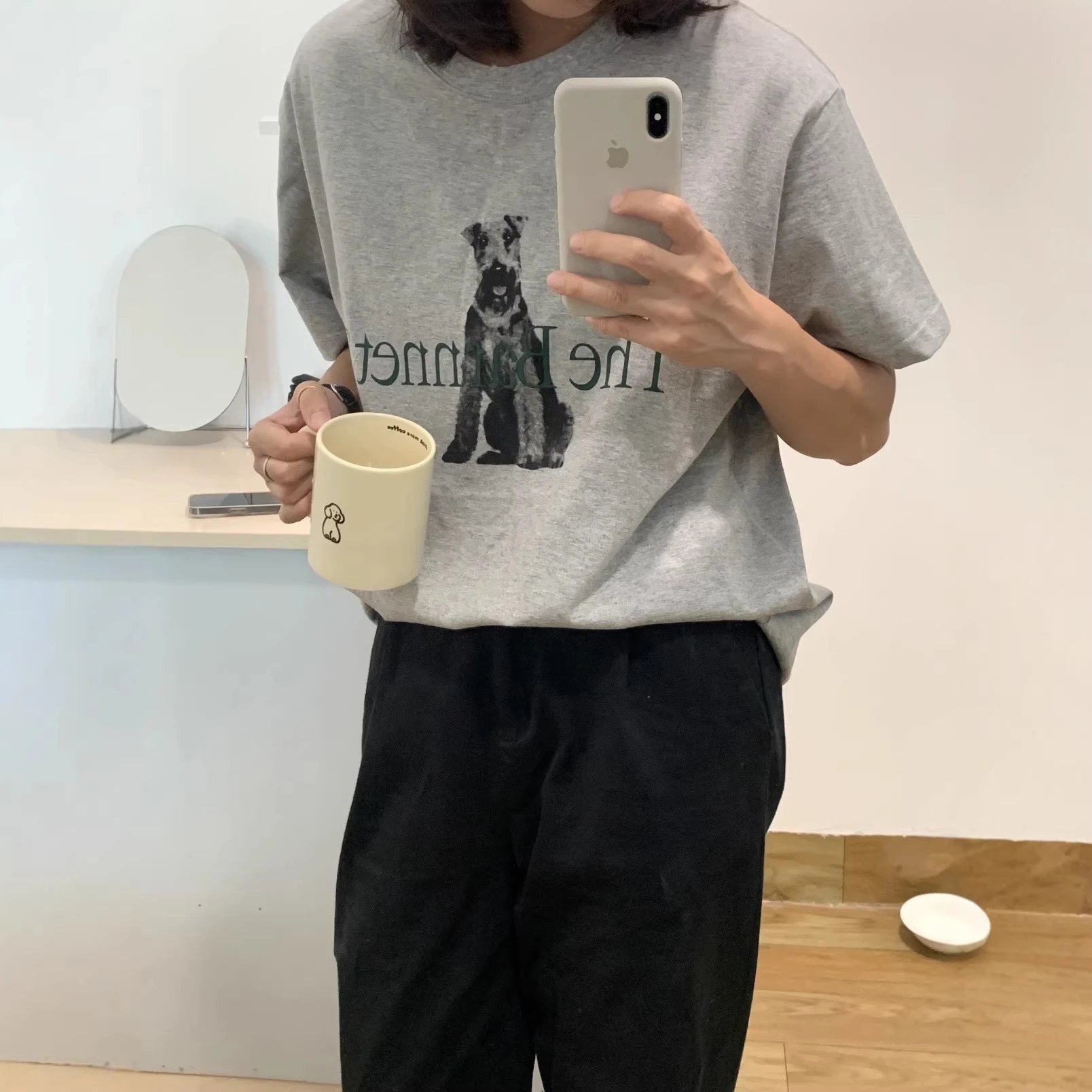 小众韩国The barnnet八奶印花狗狗圆领短袖宽松休闲男女百搭上衣