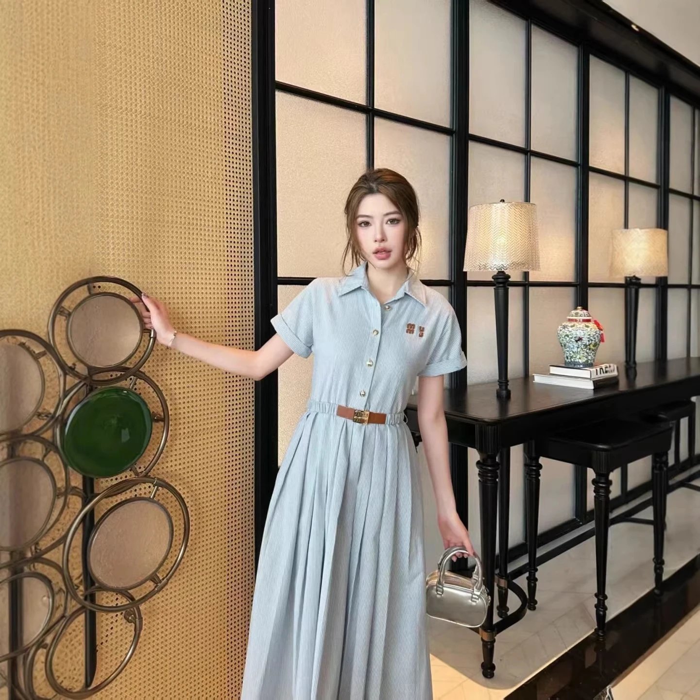 现货MU家原标polo领连衣裙字母徽标修身短袖长裙休闲款可一件代发