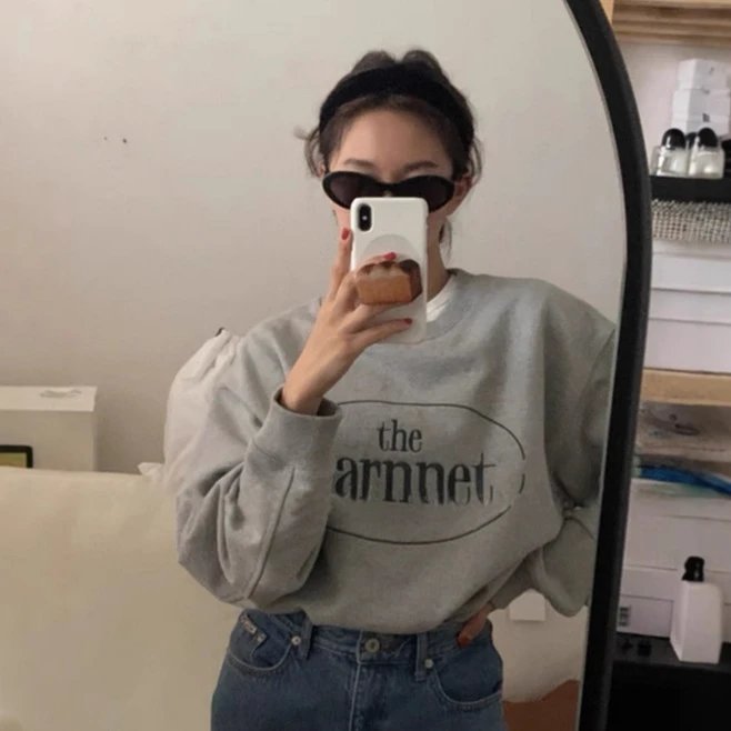 现货韩国潮牌小众品牌barnnet八奶字母刺绣款套头情侣款圆领卫衣