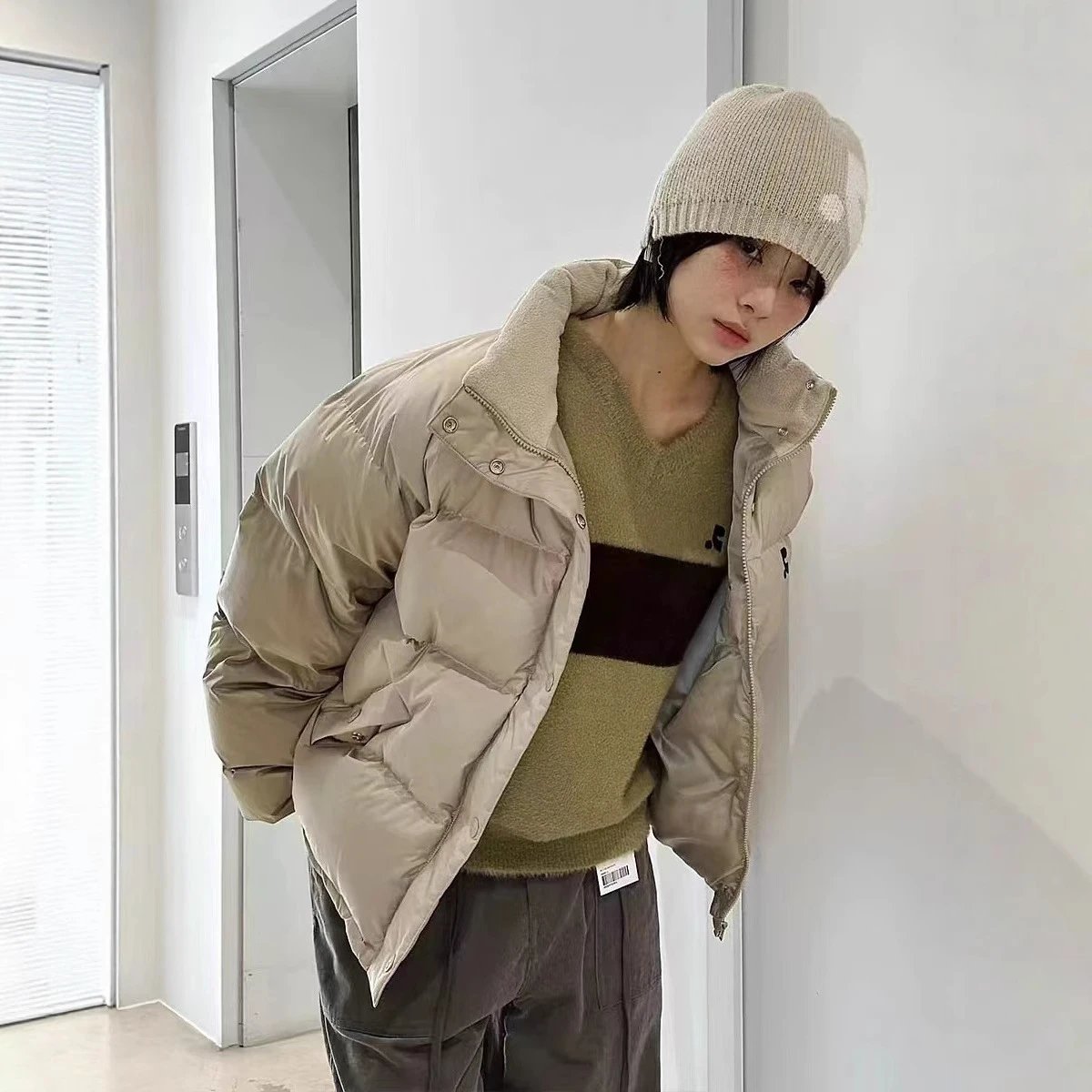 现货RR家立领面包羽绒服韩版高级感冬季外套保暖外套韩国小众外套