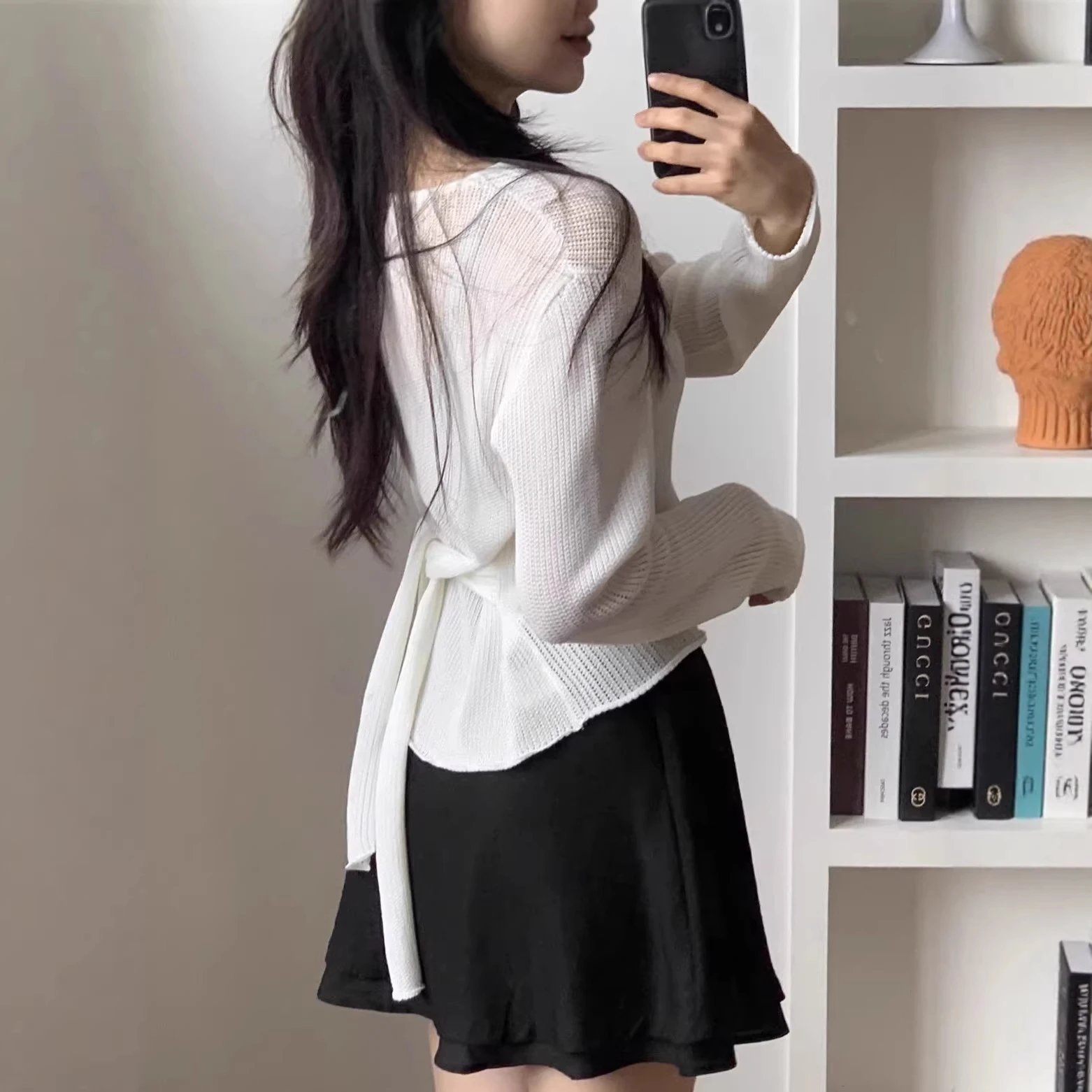 韩国小众slowand设计感绑带收腰针织衫春季叠穿宽松显瘦镂空上衣