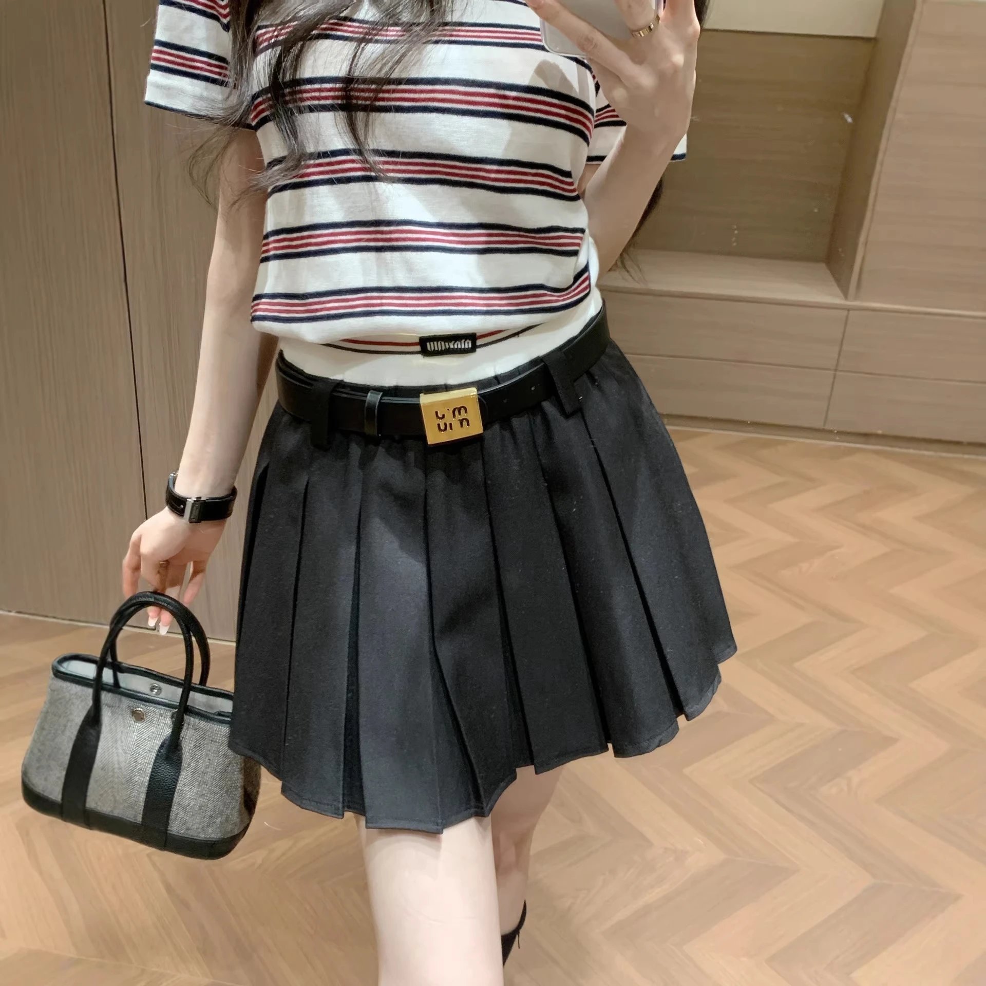 高版MU家西装百褶半身裙织带腰头设计感高腰显瘦学院风A字西装裙