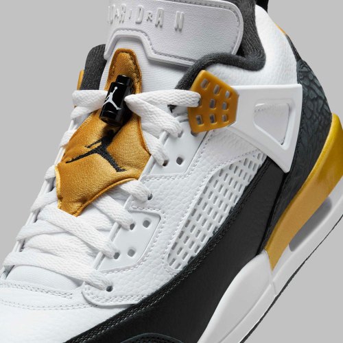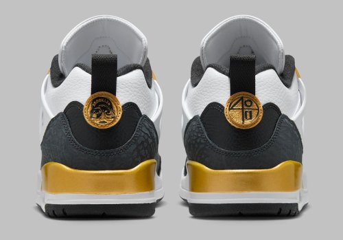 The Jordan Spiz’ike Low has made a habit of borrowing heritage-inspired makeups since day one; a strategy that’s undoubtably factored into its rise as the Jumpman’s most popular hybrid model. Joining colorways reminiscent of the “Gamma” 11s and Bin 23 Jordans in that department is a gilded “DMP” edition, shown here via official images.